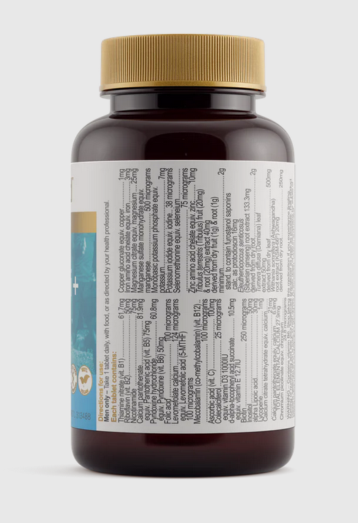 Herbs of Gold Men’s Multi + is a high-strength, comprehensive multivitamin to support men’s health.