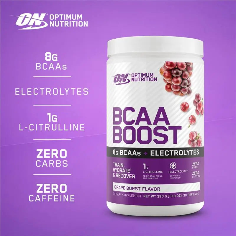 ON BCAA Boost delivers 8g of branched-chain amino acids in the scientifically-backed 2:1:1 ratio of leucine, isoleucine, and valine—the same proportion found in skeletal muscle. This intra-workout formula supports muscle preservation during extended training sessions while facilitating post-exercise recovery. The addition of 1200mg electrolytes maintains hydration status, while 1g of L-citrulline provides complementary amino acid support. With zero carbohydrates and caffeine, it's an ideal choice for athletes seeking focused endurance performance and muscle protein synthesis without unnecessary additives. Each 13g serving delivers targeted nutritional support for demanding training protocols.